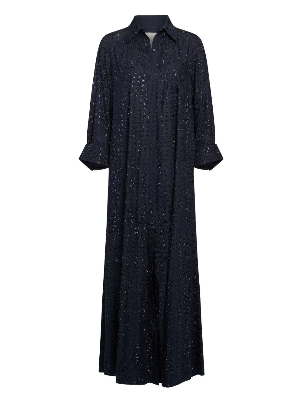Jenny's crystal-embellished shirt dress Highlights - Midnight blue - Crystal embellishment - Spread collar - Long sleeves - Button front fastening - A-line Made in United States Composition Cotton 100% Washing instructions Read Manufacturer Guidelines