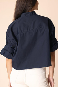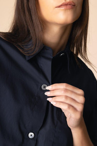 DETAILS AND INSIGHT TWP next ex shirt in midnight. 100% Superfine Cotton Dry Clean Made in USA of Italian fabric Style C051604-W005-MNT