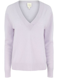 V-neck knitted top Highlights - Lilac purple - Cashmere blend - Ribbed v-neck - Ribbed cuffs and hem - Straight hem Imported Composition Cashmere 84%, Nylon 16% Washing instructions Read Manufacturer Guidelines