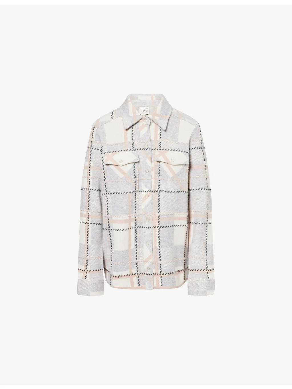 PRODUCT DETAILS - TWP cashmere cardigan - 100% cashmere - Snap fastening - Relaxed fit, collar, long sleeves, buttoned cuffs, flap pockets at chest, check pattern - Dry clean - True to size - Model is 5ft 10in/1.78m and wears a size small - Midweight, non-stretch Ref: R04564959