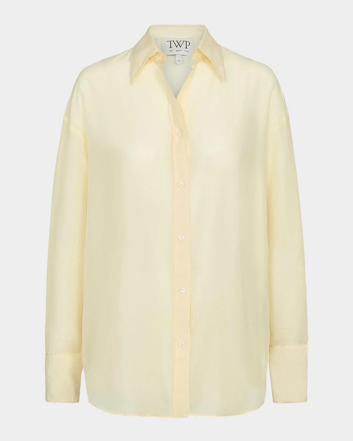 The "Big Joe" shirt by TWP is designed in a lightweight blend of cotton and silk Point collar; button front Dropped shoulders Long sleeves; button cuffs Yoked back Relaxed fit Hip length Cotton/silk Dry clean Imported SIZE & FITModel measurements: 5 & apos;10" tallModel is wearing a US size 4/Small