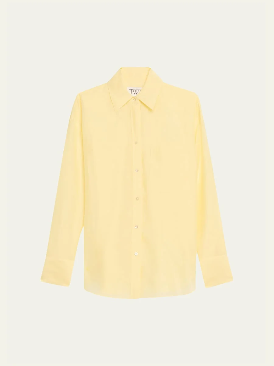 The "Big Joe" shirt by TWP is designed in a lightweight blend of cotton and silk Point collar; button front Dropped shoulders Long sleeves; button cuffs Yoked back Relaxed fit Hip length Cotton/silk Dry clean Imported SIZE amp; FITModel measurements: 5'10" tall Model is wearing a US size 4/Small