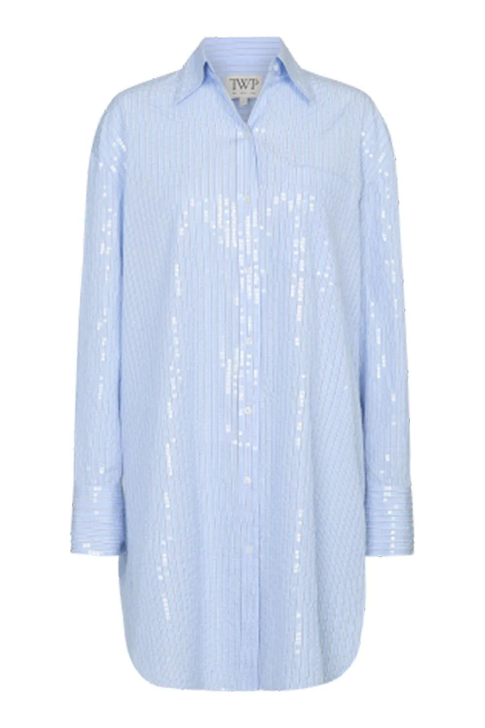 DETAILS AND INSIGHT Twp big joe shirt dress in blue/midnight. Pre-Order Ships By April 21 100% Cotton Dry Clean Made In China Style 60151-E067-BMI