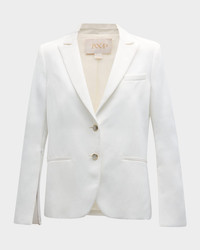 TWP Italian boyfriend blazer in a coated viscoselinen Approx. 25.5"L from shoulder to hem Peak lapels; twobutton front Long zip sleeves; approx. 30.8"L Chest welt pocket; front welt pockets Oversized fit Cutaway hem Viscose/linen Lining: Silk Dry clean Made in USA from imported materials