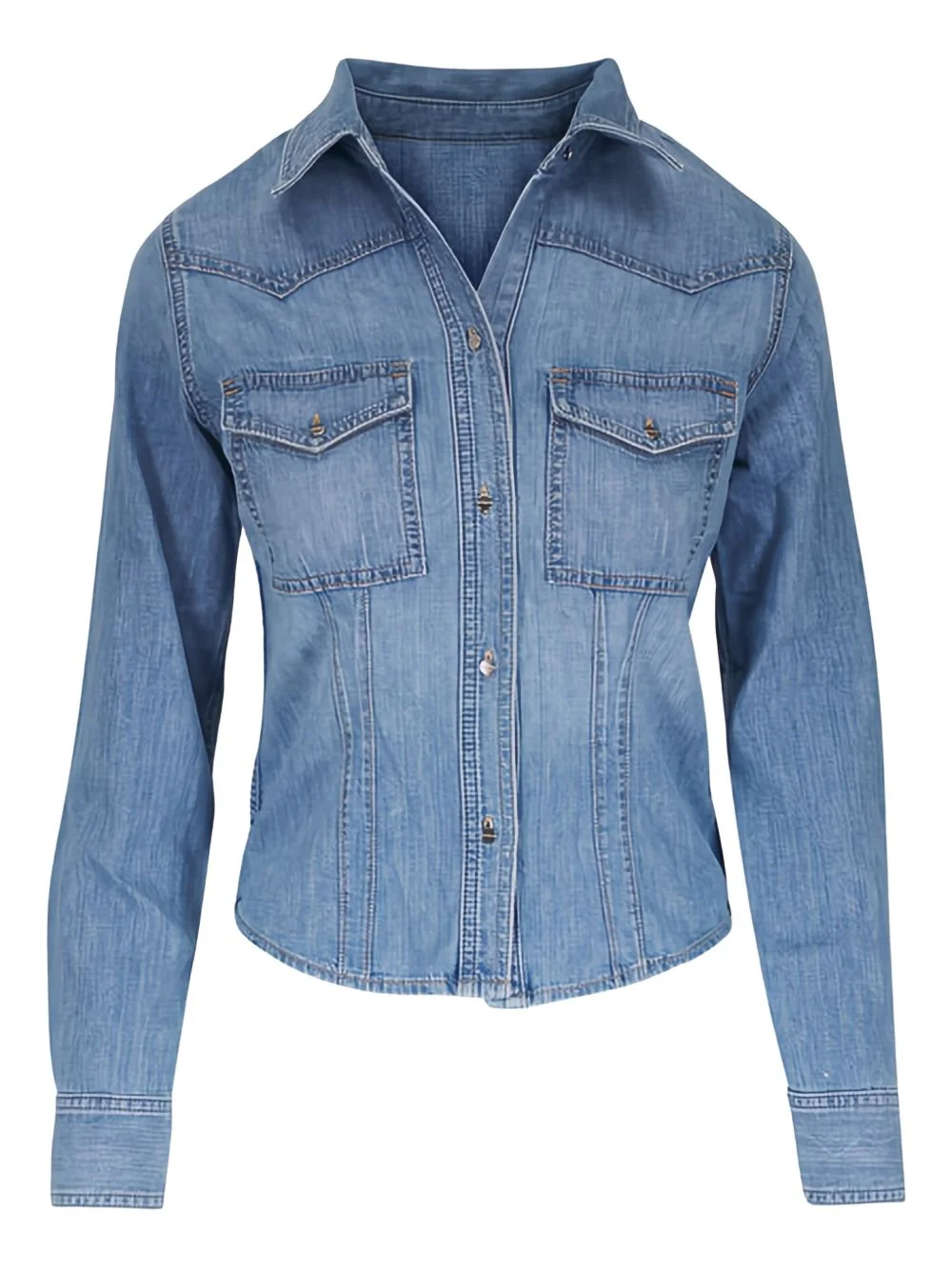 button front shirt Highlights - Blue - Button fastening - Two chest pockets - Long sleeves - Collared Made in United States Composition Cotton 100% Washing instructions Machine Wash
