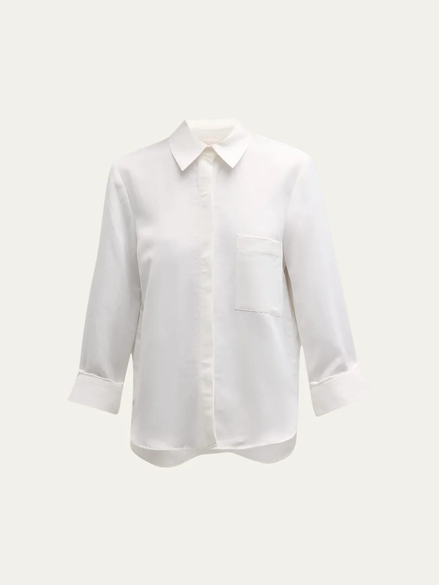 TWP boyfriend shirt in superfine cotton, finished by single roll button cuffs Point collar; button placket Long sleeves Chest patch pocket Yoked back with box pleat Relaxed fit Curved hem Cotton Made in USA from imported materials Online Inquiries: BGS21_T5S5D| Store Inquiries: #4806013