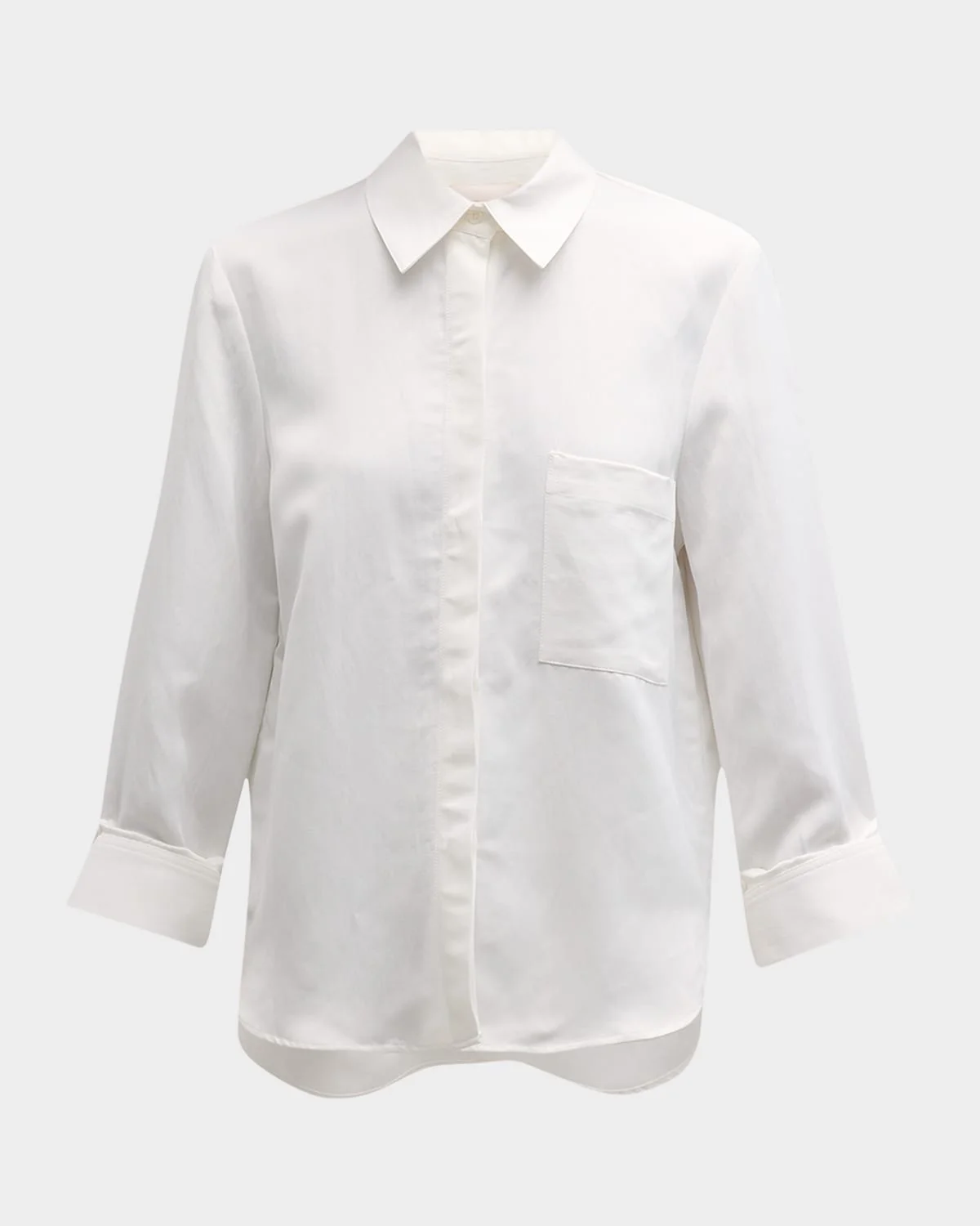 TWP boyfriend shirt in superfine cotton, finished by single roll button cuffs Point collar; button placket Long sleeves Chest patch pocket Yoked back with box pleat Relaxed fit Curved hem Cotton Made in USA from imported materials