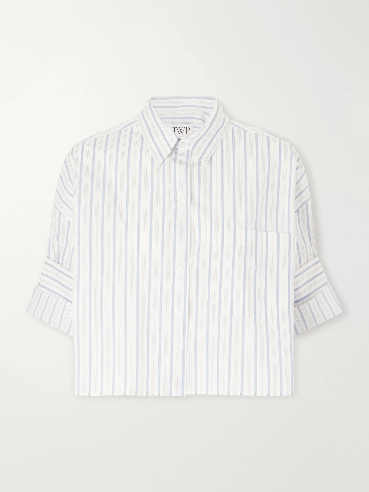 TWP's shirt reworks classic shirting through a cropped, easy silhouette. Cut from crisp striped cotton-poplin, it's shaped with dropped shoulders and rolled cuffs that enhance its relaxed, undone feel.