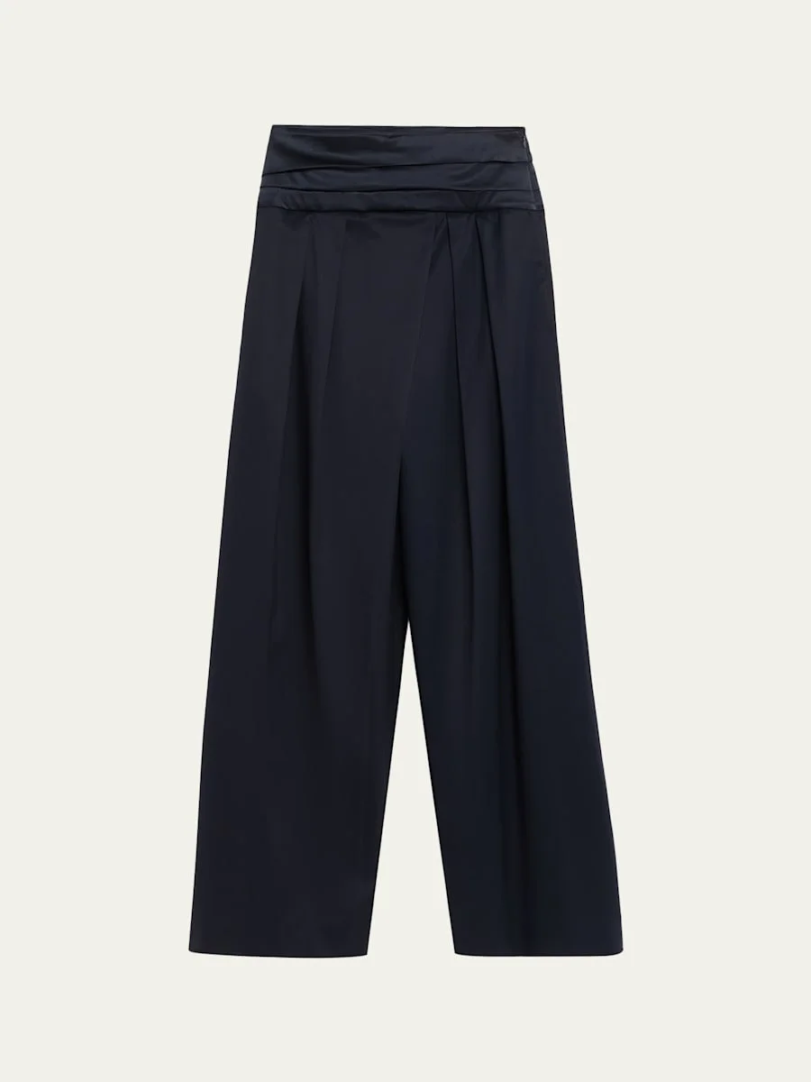 The "Delancey St" tuxedostyle trousers by TWP are crafted from stretch viscose wool twill suiting with a silky finish and a silk charmeuse cummerbund waistband High waist Side slant pockets Back welt pocket Full length Wide legs Concealed zip closure Viscose/virgin wool/elastane Made in USA from imported materials