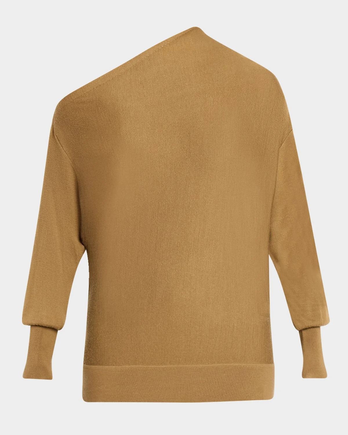 TWP's asymmetric sweater is cut from a fine wool-silk blend, featuring a modern, asymmetric neckline that drapes softly at the shoulder & nbsp; Approx. 21.3"L from shoulder to hem One-shoulder neckline Dropped shoulders Long sleeves Relaxed fit Banded cuffs and hem Pullover style Wool/silk Dry clean Imported SIZE & FITModel measurements: 5 & apos;10" tallModel is wearing a US size 4/Small