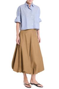 DETAILS AND INSIGHT Twp full intentions skirt in british khaki. 58% Cotton, 38% Polyester, 4% Polyurethan Dry Clean Made In Italy Style N532153-W149-BKH