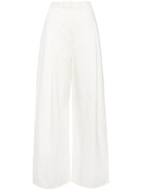 Greene St trousers Highlights - Bone white - Cotton-linen blend - Twill weave - Pleat detailing - Mid-rise - Front hook and eye fastening - Belt loops - Wide leg - Two side slit pockets - Two rear patch pockets Made in United States Composition Cotton 70%, Linen/Flax 30% SIZE & FIT Model measurements Height 5 ft 10 in(1.77 m) Bust/Chest 30.7 in(78 cm) Hips 35.03 in(89 cm) Waist 23.62 in(60 cm) FittingInformation Designed with a wide-leg cut, these trousers allow for a close fit at the waist and offer a loose and roomy fit over the leg Made from a midweight non-stretch fabric This piece fits true to size – take your usual size Washing instructions Machine Wash