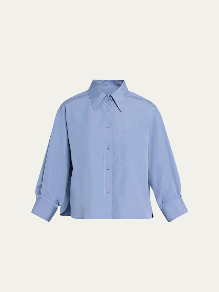 Designed in super compact poplin, the "J.D." shirt by TWP features tonal buttons Point collar; button front Long sleeves; signature single rollbutton cuffs Single chest patch pocket Yoked back Relaxed fit Slightly cropped length Cotton Dry clean Made in USA SIZE amp; FITModel measurements: 5'10" tall Model is wearing a US size 4/Small