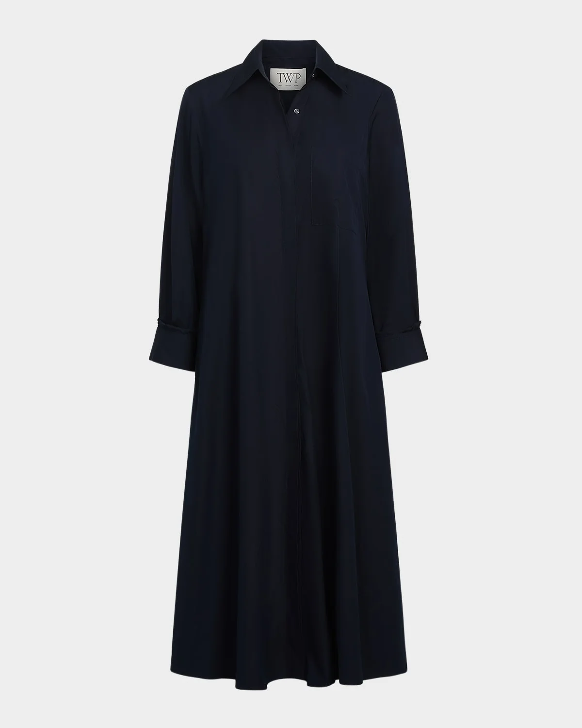 - TWP "Jennys Gown" poplin shirtdress - Spread collar; concealed button front - Long sleeves; single-roll button cuffs - Single chest patch pocket - Side seam pockets - Box-pleated back yoke - Full length - A-line silhouette - Cotton - Dry clean - Made in USA from imported materials