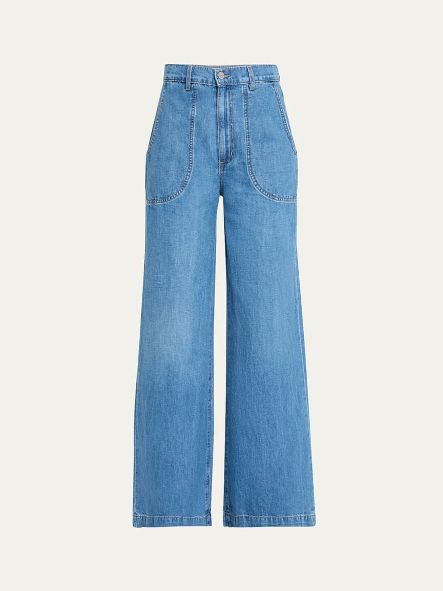Crafted from light and breathable denim, the Mecox Beach jeans by TWP are finished with a textured hand and vintage-inspired wash High rise Four-pocket style Full length Wide legs Button/zip fly; belt loops Cotton Dry clean Made in USA from imported materials Online Inquiries: BGS21_T6VEQ| Store Inquiries: #5041972