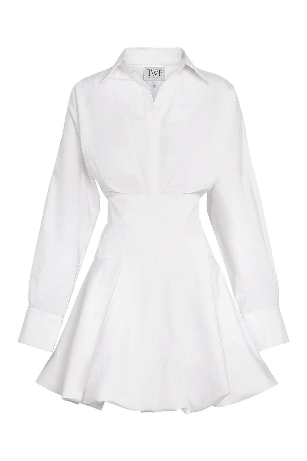 DETAILS AND INSIGHT Twp mila dress in white. Pre-Order Ships By April 21 100% Cotton Dry Clean Made In Us Style 63326-W510-WHT
