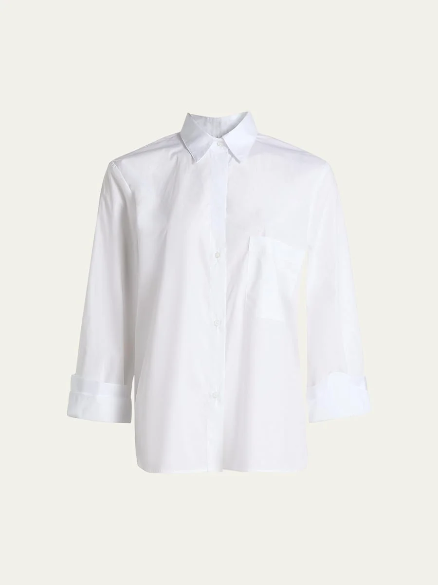 Endlessly versatile, the "Next Morning" shirt by TWP is crafted from super compact cotton poplin Spread collar Long sleeves; button cuffs Single chest patch pocket Yoked back Hip length Relaxed fit Button front closure Cotton Dry clean Made in USA