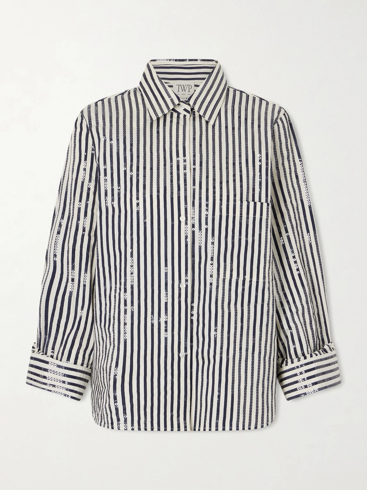 TWP's 'Next Morning' shirt is embellished with sequins, making it such a joyful take on a classic. Tailored from cotton-blend poplin, it has a relaxed fit that tempers the sparkle with a laidback air.