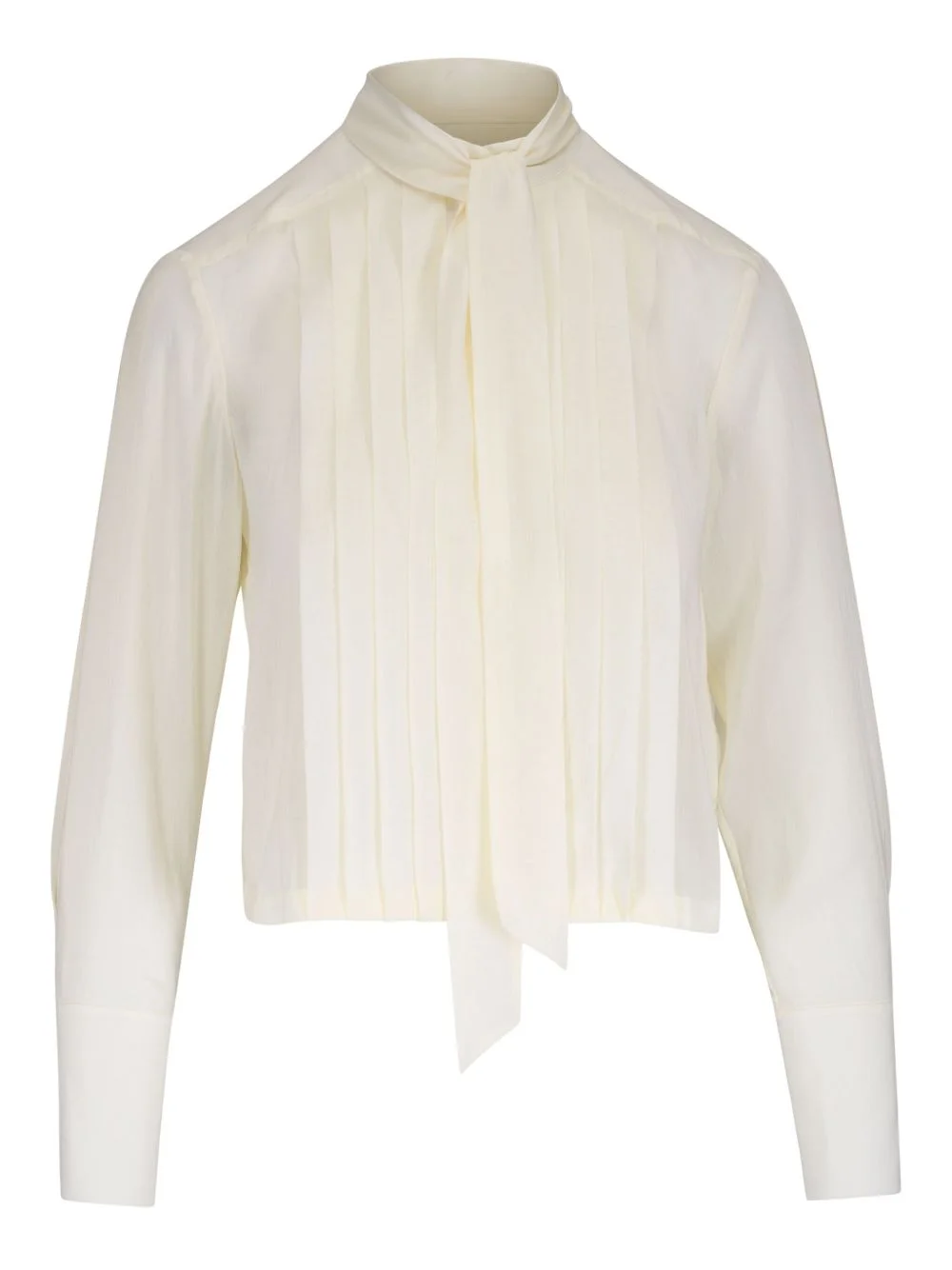 Patti shirt Highlights - Ivory white - Concealed front button fastening - Detachable necktie - Buttoned cuffs - Pleat detailing Imported Composition Cotton 78%, Silk 22%