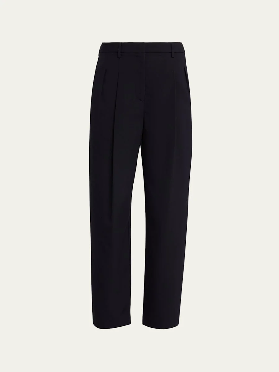 Finished with front pleating, these cigarette pants by TWP are tailored from wool suiting High rise Side seam pockets Single back welt pocket Full length Relaxed fit through straight legs Hidden hook/zip fly; belt loops Wool Dry clean Made in USA SIZE amp; FITModel measurements: 5'10" tall Model is wearing a US size 4/Small
