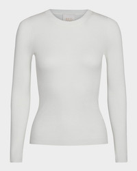 TWP ribknit top Approx. 23.5"L from shoulder to hem Crew neckline Long sleeves Hip length Slim fit Pullover style Wool Made in USA from imported materials