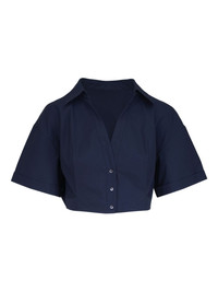 cotton shirt Highlights - Navy blue - Front button fastening - Spread collar - Short sleeves - Straight hem Made in United States Composition Cotton 100% Washing instructions Machine Wash