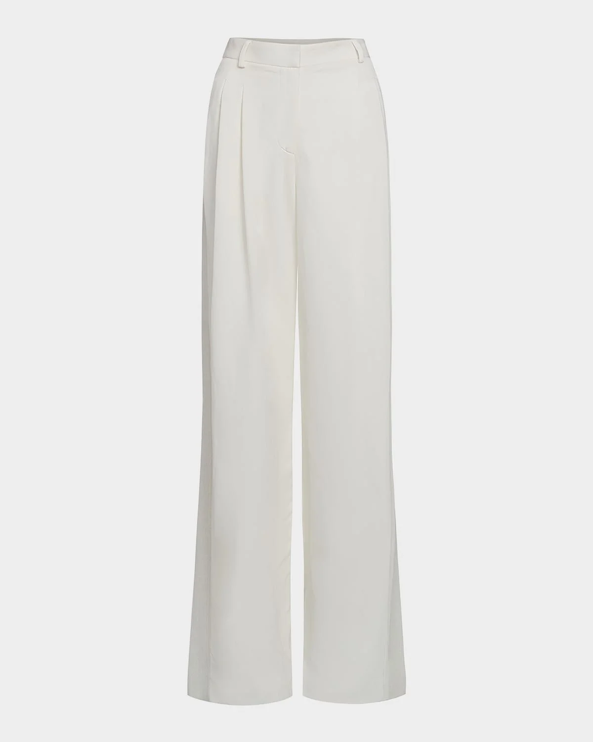 TWP "Sulli" linenblend trousers with sequinembellished side striping and front pleating Approx. 33.1" inseam; 43.4" outseam High rise Slanted side pockets Full length Wide legs Hidden hook/zip fly; belt loops Viscose/linen Dry clean Made in Italy
