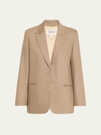 Expertly tailored from a stretch wool-blend suiting, the "Sweet Pea" blazer by TWP features a subtle pinstripe pattern and precise darting Approx. 29"L from shoulder to hem Peak lapels; single-breasted front Padded shoulders Long sleeves; button cuffs Chest welt pocket Hip besom pockets Oversized fit Mid-length Wool/cashmere/elastane Made in USA from imported materials Online Inquiries: BGS21_T8S6U| Store Inquiries: #5387508