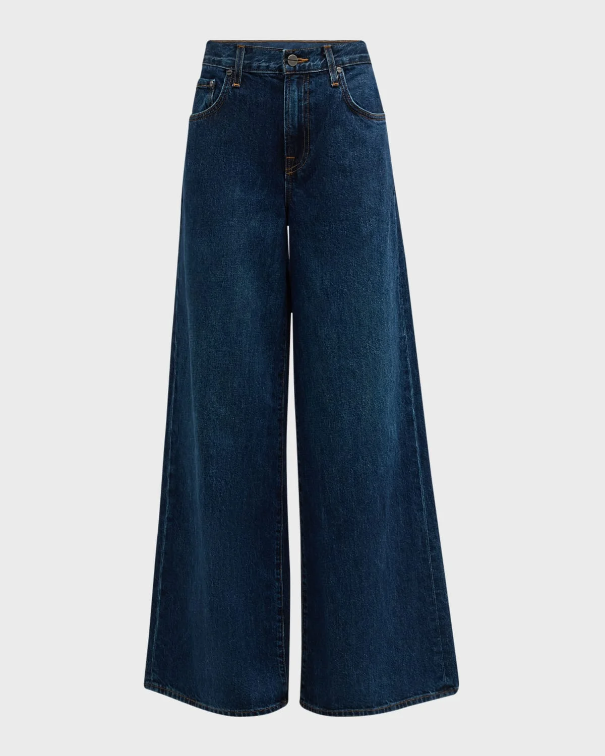 TWP "Tiny Dancer" denim jeans detailed with contrast topstitching and nail head rivet hardware Approx. measurements: 11.5" rise; 32.75" inseam; 42.625" outseam Mid rise Fivepocket style Full length Wide legs Button; zip fly Cotton Dry clean Made in USA from imported materials