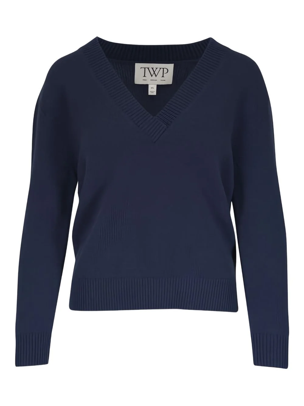 V-neck long-sleeve sweater Highlights - Dark blue - V-neck - Long sleeves - Ribbed hem - Ribbed cuffs - Ribbed neckline Made in United States Composition Cashmere 100% Washing instructions Dry Clean Only