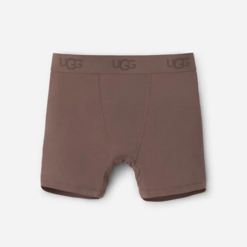 Our Alexiah Boy Short has a familiar fitted boxer brief look and an unexpected softness from our LENZING ECOVERO Viscose blended material. High-rise fitted boxer brief. 90% LENZING ECOVERO Viscose/10% Elastane. Lining - Unlined. Fully lined gusset with seaming details. High-rise. The UGG® Logo repeated on satin elastic waistband. 4 1/4 inch Inseam [Size S]. 5 inch Inseam [Size 2X]. Imported. UGG® Women's Alexiah Boy Short LENZINGu2122 ECOVEROu2122 Viscose Blend Bottoms in Allspice, Size 2XS