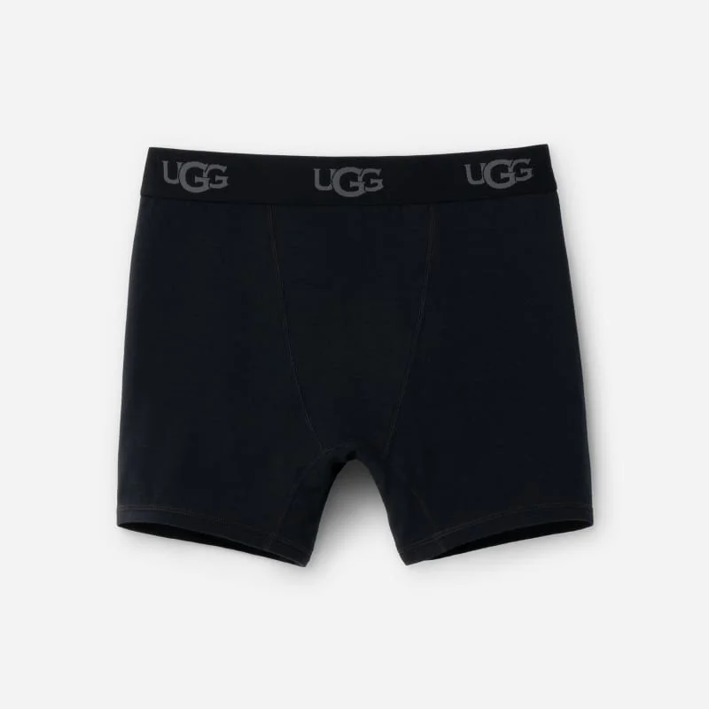 Our Alexiah Boy Short has a familiar fitted boxer brief look and an unexpected softness from our LENZING ECOVERO Viscose blended material. High-rise fitted boxer brief. 90% LENZING ECOVERO Viscose/10% Elastane. Lining - Unlined. Fully lined gusset with seaming details. High-rise. The UGG® Logo repeated on satin elastic waistband. 4 1/4 inch Inseam [Size S]. 5 inch Inseam [Size 2X]. Imported. UGG® Women's Alexiah Boy Short LENZINGu2122 ECOVEROu2122 Viscose Blend Bottoms in Black, Size M