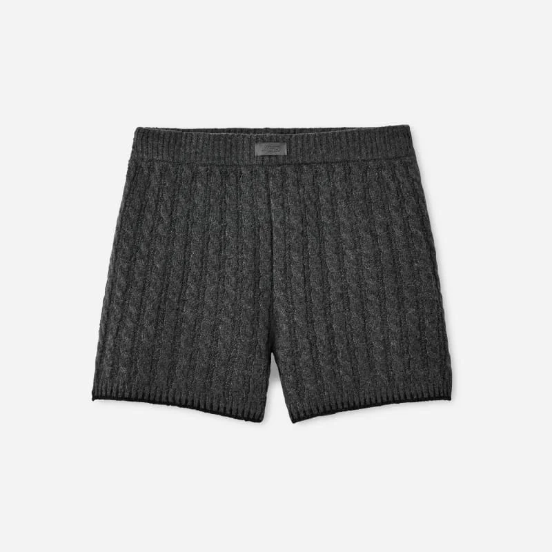 We like to call our Azriel Cable Knit Short the official short of UGG® Season. Soft, cozy, and superbly cute, this short is made with a chunky cable knit and finished with heritage-inspired whipstitch details along the cuff.This product was made in a factory that supports women in our supply chain with the help of Reimagining Industry to Support Equality (RISE). This collaborative initiative creates partnerships with brands like ours to empower and educate women in the workplace. High-rise classic-fit cable knit short. Self - 55% Recycled Polyester/43% Polyester/2% Elastane. Lining - Unlined. Whipstitch detail on leg opening. Ribbed waistband and leg opening. The UGG® Logo license plate label on front waistband. 3 inch Inseam [Size S]. Imported. This product was made in a factory that supports women in our supply chain with the help of Reimagining Industry to Support Equality (RISE). This collaborative initiative creates partnerships with brands like ours to empower and educate women in the workplace.. UGG® Women's Azriel Cable Knit Short Polyester Bottoms in Charcoal Heather, Size XL
