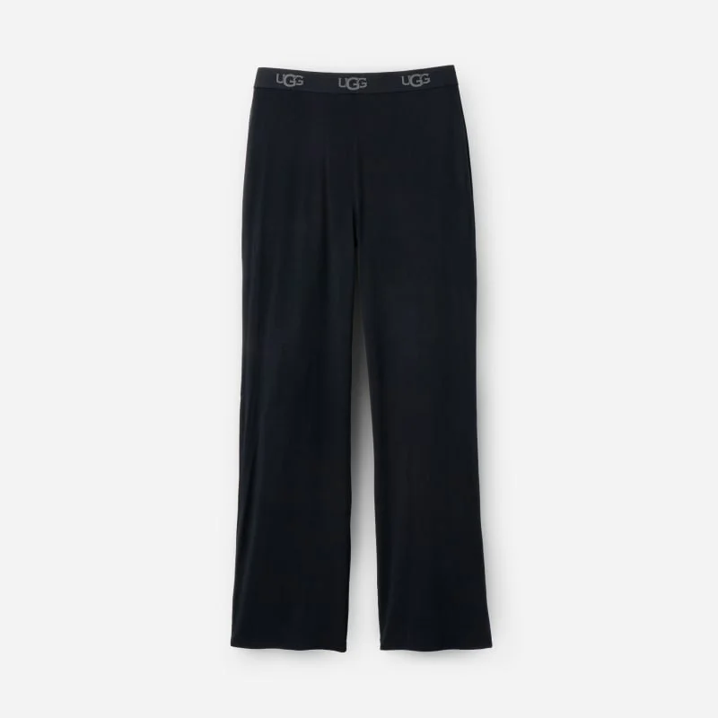 High-rise and wide-leg, our Britta Pant is made from our super soft LENZING ECOVERO Viscose blended material. Pair with any of our Soft intimates bralettes or tops for a luxe lounge look. High-rise classic-fit wide-leg pant. 90% LENZING ECOVERO Viscose/10% Elastane. Lining - Unlined. The UGG® Logo repeated on satin elastic waistband. 29 inch Inseam [Size S]. 29 3/4 inch Inseam [Size 2X]. Imported. UGG® Women's Britta Pant LENZINGu2122 ECOVEROu2122 Viscose Blend Bottoms in Black, Size XL