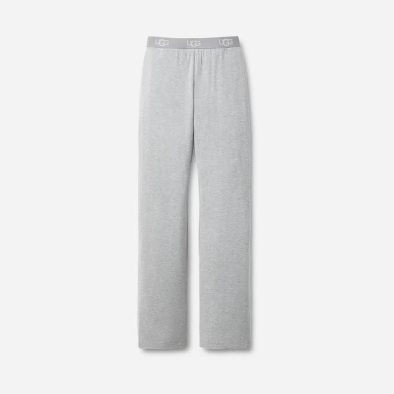 High-rise and wide-leg, our Britta Pant is made from our super soft LENZING ECOVERO Viscose blended material. Pair with any of our Soft intimates bralettes or tops for a luxe lounge look. High-rise classic-fit wide-leg pant. 90% LENZING ECOVERO Viscose/10% Elastane. Lining - Unlined. The UGG® Logo repeated on satin elastic waistband. 29 inch Inseam [Size S]. 29 3/4 inch Inseam [Size 2X]. Imported. UGG® Women's Britta Pant LENZINGu2122 ECOVEROu2122 Viscose Blend Bottoms in Grey Heather, Size XL