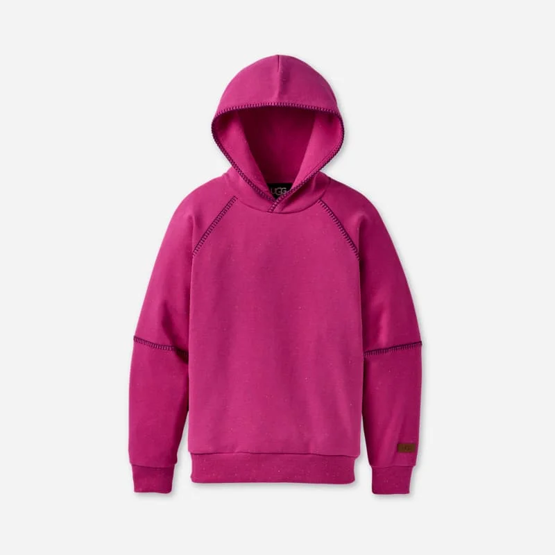 Our Classic Hoodie embodies the spirit of our Classic Boot in an equally cozy sweatshirt. Designed with brushed-back fleece, whipstitch detailing, and an overlapping neckline, this is one hoodie you won't want to lend out. We recommend pairing the Classic Hoodie with the Classic Sweatpant for an elevated level of UGG® comfort. Oversized-fit hooded sweatshirt. Self - 55% Responsible Cotton/45% recycled polyester. Rib Knit - 96% Responsible Cotton/4% elastane. Responsible Cotton means: responsible cotton sourcing scheme cotton, recycled cotton, or organic cotton. Lining - Unlined. Whipstitch detail on seams. Side seam pockets. The UGG® License Plate, leather label. 27 inch HPS length [size S]. 29 3/4 inch HPS [size 2X]. Pairs with the Classic Sweatpant. Imported. UGG® Women's Classic Hoodie Cotton Blend/Recycled Materials Hoodies & Sweatshirts in Vavoom Heather, Size M