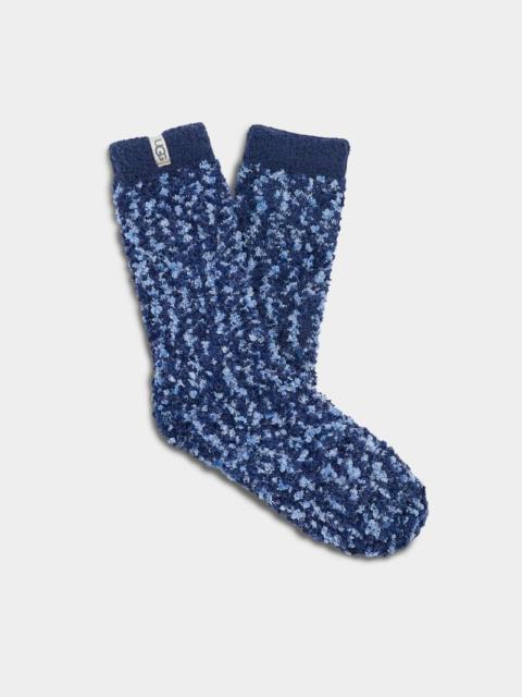 These dreamy, super-soft socks are perfect for lounging around the house all year. This product was made in a factory that supports women in our supply chain with the help of HERproject. This collaborative initiative creates partnerships with brands like ours to empower and educate women in the workplace. Crew sock with multicolor chenille yarn. Polyester blend - 99% recycled polyester/1% elastane. 9 1/2 inch height. Soft twill tape with The UGG® Logo on top cuff. Packaged with hanger and belly band. Fits shoe size: 5-10. Imported. UGG® Women's Cozy Chenille Sock Recycled Materials/Polyester Blend in Seashell Pink