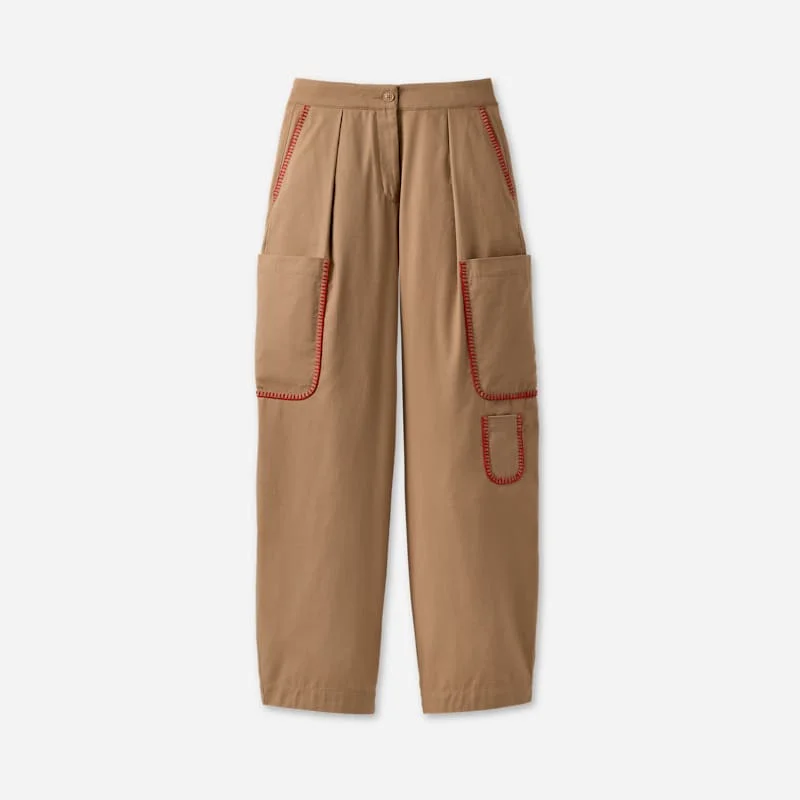 Cargo pants to the office? Absolutely. Our Hollyn Cargo Pant goes everywhere you do, and looks good doing it. Featuring exaggerated cargo pockets, these wide-leg pants are bottoms destined for repeat wear. A flat front waistband, functional fly, and pleats add polish, while the elastic back waistband moves with you while you're running around town. Pair with your favorite tank or match with our Nathalia SS Button Up Top, and you've got a standout pant that puts a fresh take on any setting.This product was made in a factory that supports women in our supply chain with the help of Reimagining Industry to Support Equality (RISE). This collaborative initiative creates partnerships with brands like ours to empower and educate women in the workplace. High-rise relaxed-fit woven pant. Self - 74% Responsible Cotton/26% LENZING ECOVERO Viscose. LENZING and ECOVERO are trademarks of Lenzing AG. Responsible Cotton means: responsible cotton sourcing scheme cotton, recycled cotton, or organic cotton. Lining - Unlined. Metal zip fly with The Graphic UGG® Font button closure. Elastic back waistband. Slanted side pockets. Patch pockets. Back patch pockets with flaps. Whipstitch detail on seams. The UGG® License Plate embroidered label. 31 inch Inseam Length [Size S]. Pairs with Nathalia SS Button Up Top. Imported. This product was made in a factory that supports women in our supply chain with the help of Reimagining Industry to Support Equality (RISE). This collaborative initiative creates partnerships with brands like ours to empower and educate women in the workplace.. UGG® Women's Hollyn Cargo Pant in Sand, Size L