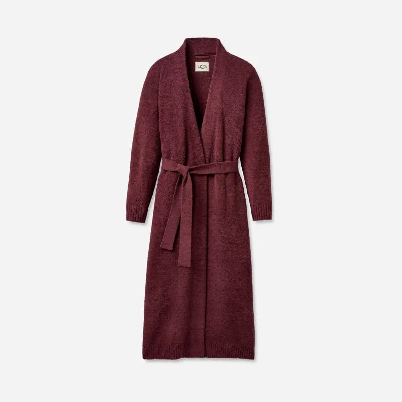 Made with 100% recycled fibers, our Lenny Robe II is incredibly soft, lending a textured twist to any at-home moment. Featuring side-seam pockets and a self-belt, it pairs perfectly with loungewear staples (especially your favorite slippers).This product was made in a factory that supports women in our supply chain with the help of HERproject. This collaborative initiative creates partnerships with brands like ours to empower and educate women in the workplace. Classic-fit full-length robe. Self - 100% recycled polyester. Lining - Unlined. Self belt. On-seam side pockets. 47 7/8 inch HPS length [size S]. 50 inch length [size 2X]. Imported. UGG® Women's Lenny Robe II Cozy Knit Tops in Wild Grape, Size XL
