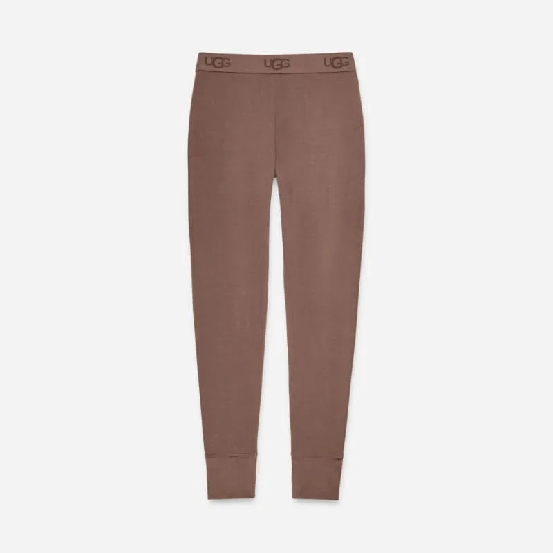 New and improved, it's our Paloma Legging II. Featuring the same flattering high rise and super soft LENZING ECOVERO viscose blend as the originals, this edition has a heavier weight for extra opacity to keep you covered and cozy. High-rise fitted lounge legging. 93% LENZING ECOVERO Viscose/7% Elastane in heavier 285 gsm weight. LENZING and ECOVERO are trademarks of Lenzing AG. Lining - Unlined. Cuffs at the ankle. The UGG® Logo repeated on satin elastic waistband. 25 inch Inseam [Size S]. 26 inch Inseam [Size 2X]. Imported. UGG® Women's Paloma Legging II LENZINGu2122 ECOVEROu2122 Viscose Blend Bottoms in Allspice, Size 1X