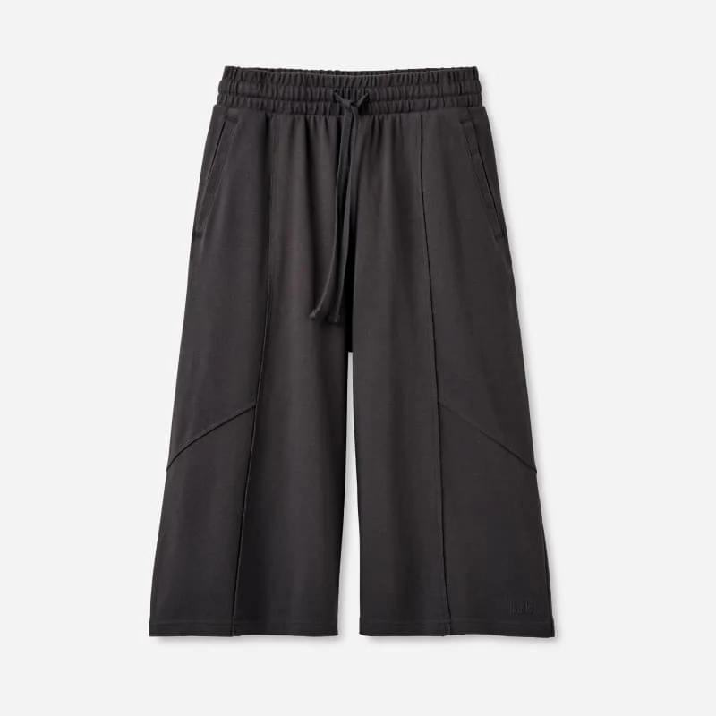 Want to be as comfortable as you are put-together? So do we. That's why we created our Rhia Culotte. With a wide high rise waistband, wide flowing legs, and a soft cotton blend made with Responsible Cotton, we love to live in the Rhia Culotte - and you will too.This product was made in a factory that supports women in our supply chain with the help of Reimagining Industry to Support Equality (RISE). This collaborative initiative creates partnerships with brands like ours to empower and educate women in the workplace. Mid-rise wide-leg culotte. Self - 95% Cotton/5% Elastane. Made with Responsible Cotton. Lining - Unlined. Elastic waistband with internal drawcord. Side seam pockets. Raw seam detail throughout. Garment washed for extra softness. Embroidered The Graphic UGG® Font. 16 3/4 inch Inseam [Size S]. Imported. This product was made in a factory that supports women in our supply chain with the help of Reimagining Industry to Support Equality (RISE). This collaborative initiative creates partnerships with brands like ours to empower and educate women in the workplace.. UGG® Women's Rhia Culotte Cotton Blend Bottoms in Ink, Size S