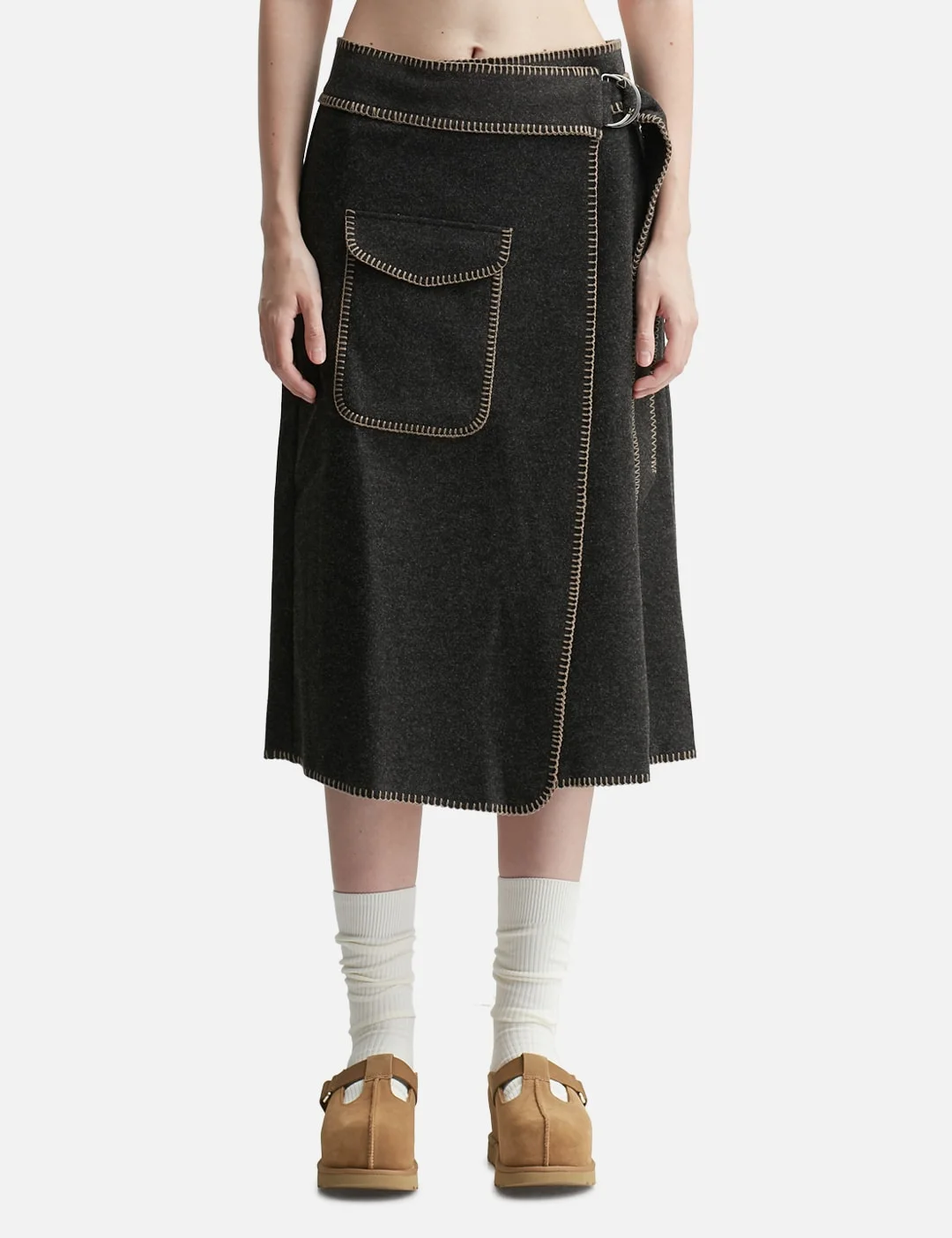 - UGG - Adina Wrap Skirt - Made of recycled polyester and livaeco viscose - Whipstitch detail - Patch pocket with flap closure - Interior buttons at waist - Adjustable belt with metal D ring closure - The UGG® License Plate embroidered label - Color: Black Heather - Material: 93% Recycled Polyester, 7% Livaeco Viscose - See more Skirts and Clothing - Model wears size S - Model measures: Height 180cm, Chest 28.3’’/72cm, Waist 22’’/56cm, Hip 35’’/89cm - Vendor Code: 2UG1172215BHTHR