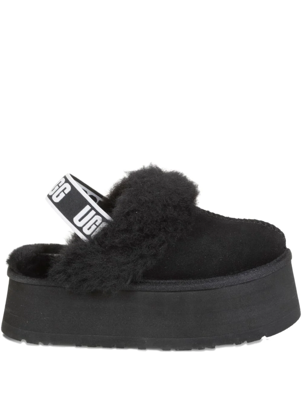 Funkette platform mules Highlights - Black - Suede - Elastic strap - Platform sole Imported Composition Outer: Suede 100%, Sheep Skin/Shearling 100% Sole: Polyethylene vinyl acetate (PEVA) 100% Lining: Sheep Skin/Shearling 100% SIZE & FIT Measurement HEEL 2.75 in(7 cm) PLATFORM 1.96 in(5 cm)