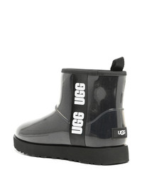 Black/white Classic Clear mini ankle boots from UGG featuring logo-tape detailing, round toe, transparent design, ankle-length, pull-tab at the heel and flat rubber sole. DETAILS Composition Synthetic Polyester100.0 % Model ID UGSCLCLEM-1113190BK