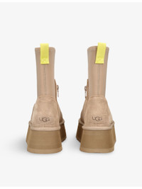 PRODUCT DETAILS - UGG suede and rubber boots - 100% suede and neoprene - Slips on - Ankle height, round toe, exposed piping, pull tab at back, branded patch at back, platform sole, zip fastening at side - Heel height 45mm / 1.77"""" - Specialist leather clean - Upper: 100% suede and neoprene - Lining: 100% fabric - Sole: 100% rubber