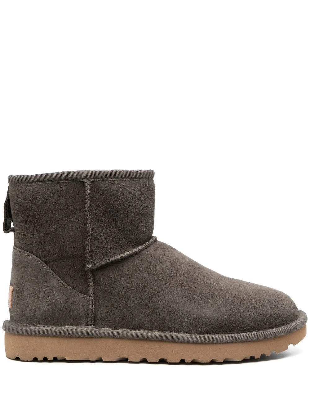 Classic Mini II shearling ankle boots First designed in the late 1970s, UGG's iconic ankle boots have proved their timelessness, with a variety of colours and iterations still being introduced to this day. This slate grey pair emphasises the classic nature of the design with their signature gum rubber sole and soft shearling construction. Imported Composition Outer: Sheepskin 100% Lining: Sheep Skin/Shearling 100% Sole: Rubber 100% SIZE & FIT Measurement CIRCUMFERENCE 11.02 in(28 cm) HEEL 0.98 in(2.5 cm) HEIGHT 4.72 in(12 cm) Sole height 0.78 in(2 cm)