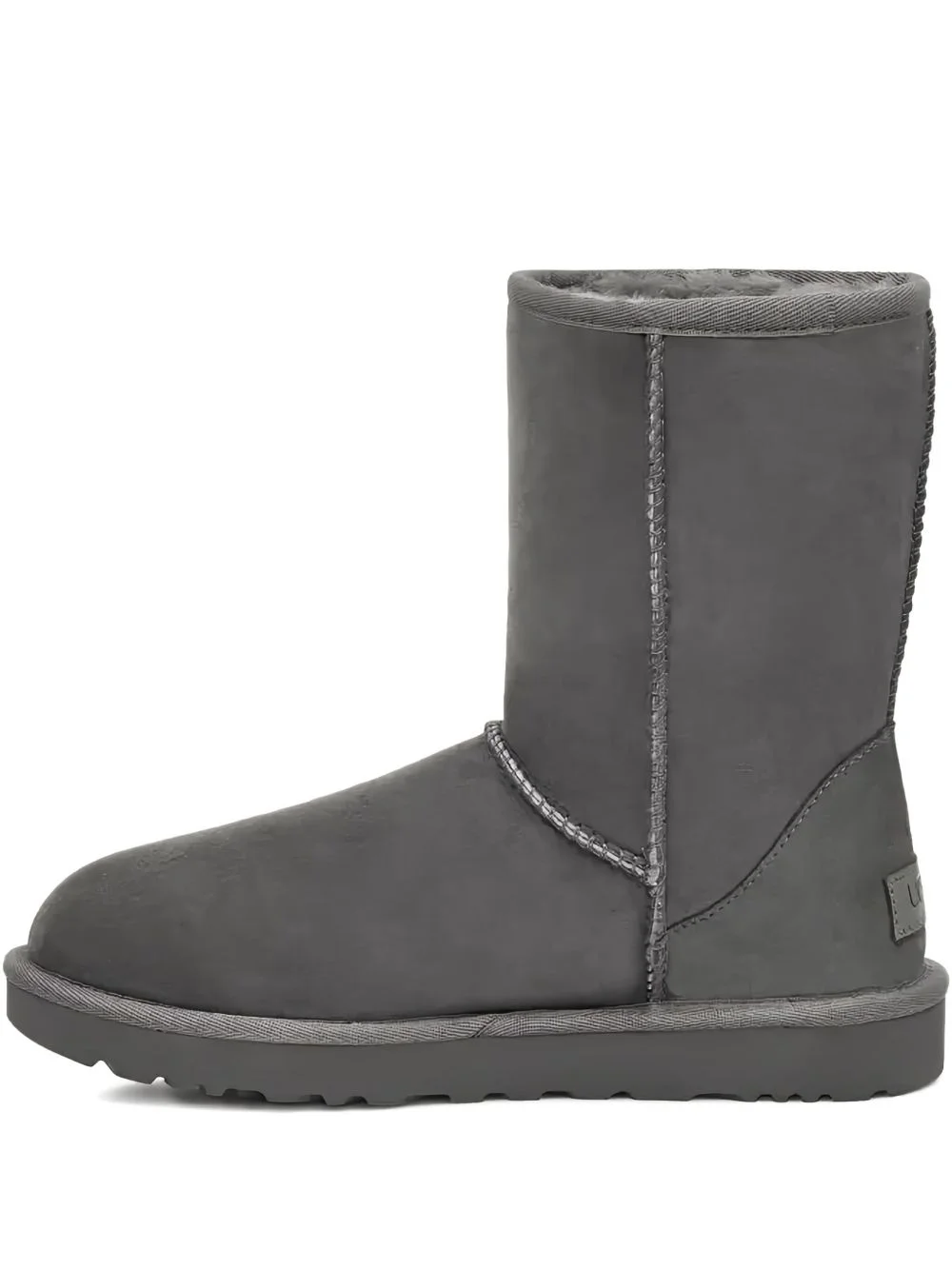 Classic Ugg ankle boots Grey leather Classic Ugg ankle boots from UGG featuring a slip-on style, a rear logo stamp, a round toe and a flat rubber sole. Made in Italy Composition Calf Leather 100% SIZE & FIT Measurement CIRCUMFERENCE 12.59 in(32 cm) HEEL 0.98 in(2.5 cm) HEIGHT 7.08 in(18 cm) Sole height 0.78 in(2 cm)