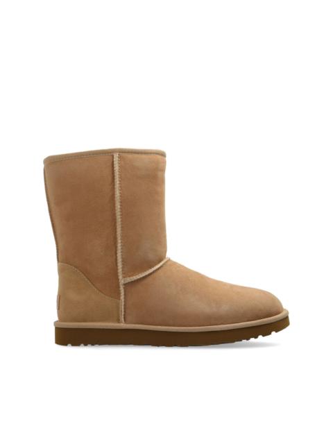 Classic Short II "Burnt Cedar" boots Originally worn by surfers to keep warm after early-morning sessions, these Classic Short II boots have become a UGG icon. They are crafted from smooth suede and set on a durable, ultra-lightweight sole to increase cushioning and traction. Highlights - Cedar brown - Sheepskin - Slip-on style - Branded heel counter - Whipstitch detailing - Ankle-length - Round toe - Shearling lining - Flat rubber sole Imported Composition Suede 100% SIZE & FIT Measurement HEEL 0.98 in(2.5 cm) CIRCUMFERENCE 11.81 in(30 cm) Sole height 0.78 in(2 cm) HEIGHT 8.26 in(21 cm)