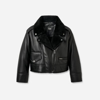 Our Finnian Luxe Fluff Moto Jacket is the coziest Moto jacket you've ever met. Crafted with a luxurious combination of faux leather and plush faux shearling, it has the classic Moto asymmetrical zip and an oversized collar with the Feel of UGG® you know and love. Oversized-fit faux leather and faux shearling moto jacket. Self - 93% polyester/7% spandex (faux leather), 100% polyester (faux shearling). Lining - Unlined. Asymmetrical zip front closure. Patch pocket with flap and The UGG® Logo snap closure. Horizontal zip pocket. Oversized metal zippers with The UGG® Logo pulls. The UGG® Logo snaps. 23 inch HPS length [size S]. Imported. Dry clean. UGG® Women's Finnian Luxe Fluff Moto Jacket Polyester in Black, Size L