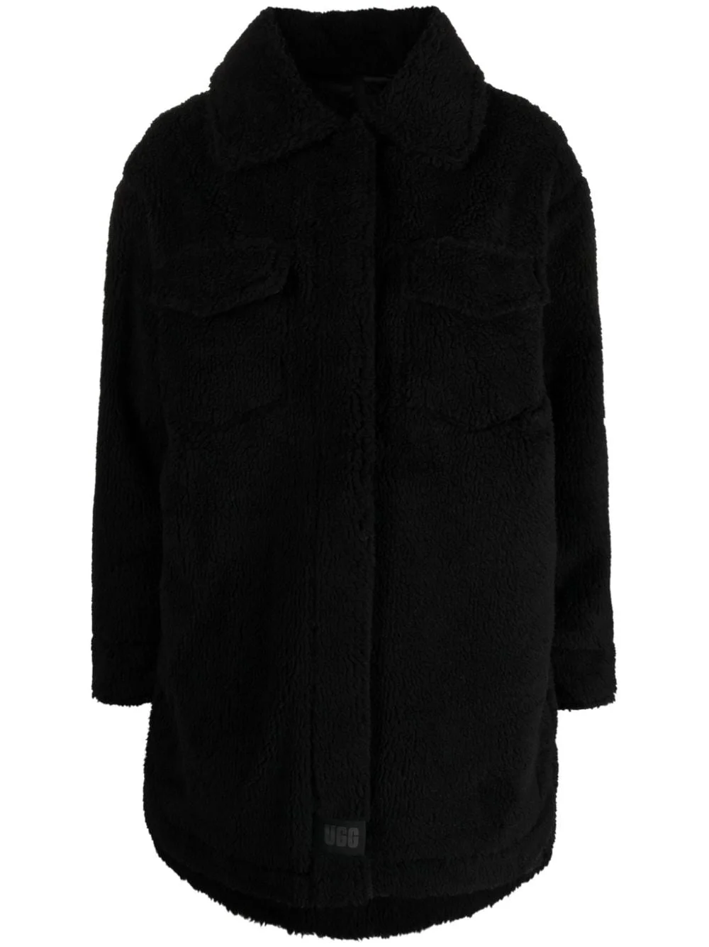 Frankie UGGfluff shirt jacket Made from UGG's signature UGGfluff faux fleece, the Frankie shirt jacket has a cosy warmth and charming design. It boasts a relaxed cut, in jet black, enhanced with concealed front fastening and a logo tag. Highlights - Black - Recycled polyester blend - Faux-fur design - Spread collar - Long sleeves - Concealed front fastening - Logo tag - Straight hem Imported Composition Outer: Recycled Polyester 76%, Polyester 21%, Cotton 3% Lining: Polyester 94%, Elastane 6% SIZE & FIT Model measurements Height 5 ft 10 in(1.78 m) Bust/Chest 30.7 in(78 cm) Hips 36.22 in(92 cm) Waist 25.59 in(65 cm) FittingInformation Designed to be unstructured, offering a loose fit throughout Made from a midweight fabric This piece fits true to size – take your usual size Washing instructions Machine Wash